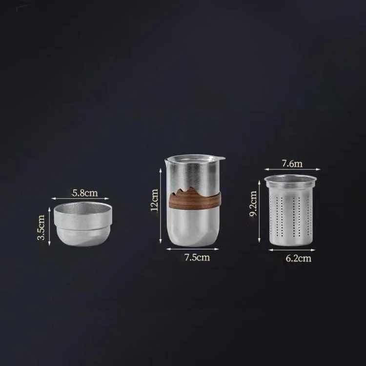 இது வெளிப்புறத்திற்கான ஒரு தேநீர், இது டைட்டானியத்தால் ஆனது, மற்றும் பரிசு பெட்டியுடன் பேக்கேஜிங் செய்யப்படுகிறது. நான்கு சிறிய டைட்டானியம் கோப்பைகள், ஒரு பெரிய டைட்டானியுன் கப், மற்றும் ஒரு தோல் வழக்கு. நான்கு சிறிய கோப்பைகளை பெரிய கோப்பைக்குள் எளிதாக வைக்கலாம், பின்னர் பெரிய கோப்பையை பையில் வைக்கலாம். எல்லா கருவிகளையும் வைத்திருக்க ஒரு பாக்கெட் போதுமானது. உங்கள் நண்பர்களுடன் நிதானமான முறையில் வலுவான ஆல்கஹால் அனுபவிக்கட்டும்.