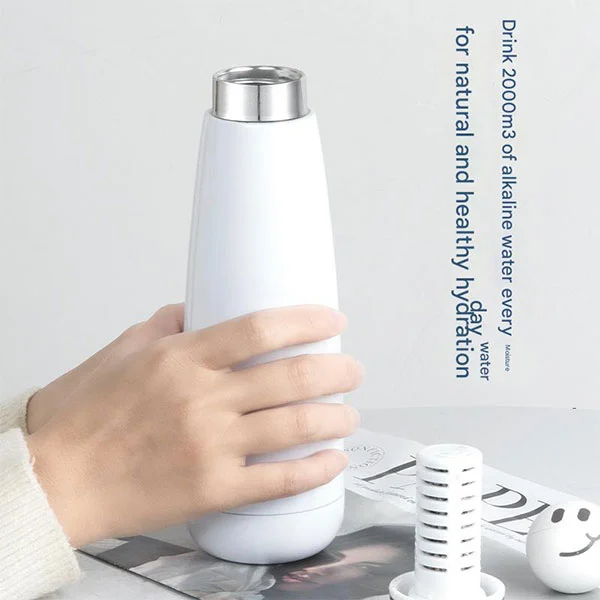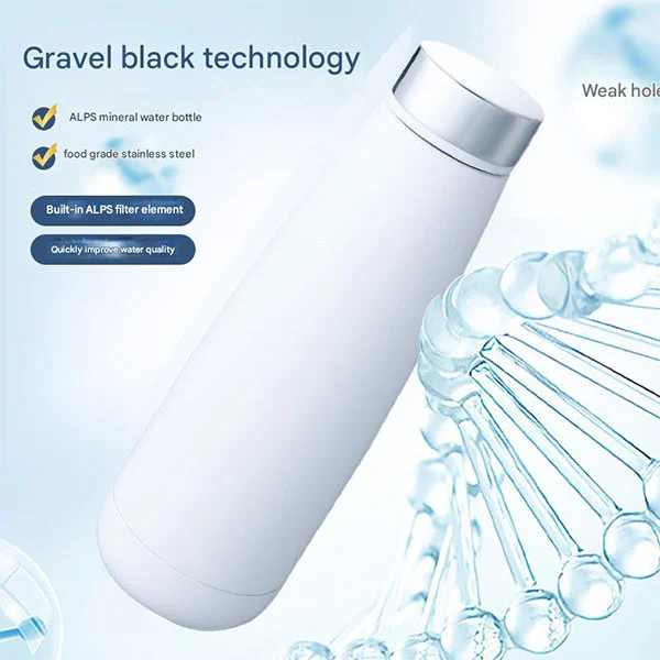 ஏன் ஒரு தண்ணீர்காப்பிடப்பட்ட கோப்பை சுத்திகரிப்பு? நாங்கள் மூடியில் ஒரு தேநீர் சேமிப்பு பகுதியை வடிவமைத்துள்ளோம், அதற்குள், சிறப்பு சூழல் நட்பு பொருட்களை - ஆல்ப்ஸ் கனிம துகள்கள் வைத்துள்ளோம். ஆல்ப்ஸ் துகள்கள் அலுமினியம், மெக்னீசியம், இரும்பு, சோடியம் மற்றும் பொட்டாசியம் போன்ற கூறுகளால் நிறைந்துள்ளன. இந்த கூறுகள் ஆரோக்கியத்திற்கு நன்மை பயக்கும் மற்றும் நீரின் அமிலத்தன்மை மற்றும் காரத்தன்மையை மேம்படுத்தலாம். நீங்கள் தண்ணீரைக் குடிக்கும்போது, சுத்திகரிப்புக்காக இந்த துகள்கள் வழியாக நீர் செல்கிறது, சற்று காரமாக மாறும். இது உங்கள் குடிநீரை பாதுகாப்பானதாக ஆக்குகிறது.