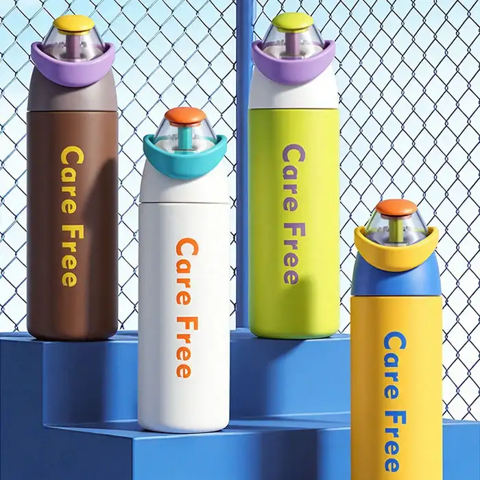 "ஸ்போர்ட்ஸிற்கான ஸ்டெயின்லெஸ் ஸ்டீல் கட பாட்டிலின்" கப் பாடி, "கேர்ஃப்ரீ" முப்பரிமாண அச்சிடப்பட்ட வார்த்தைகளைக் கொண்டுள்ளது. பணக்கார இளம் பெண்கள் மற்றும் ஸ்போர்ட்டி திவாஸ் போன்ற பல்வேறு கேரக்டர் சுயவிவரங்களுக்கு ஏற்றதாகக் குறைவாகவும், பளபளப்பாகவும் இல்லை. இது நேர்த்தியுடன் மற்றும் நடைமுறை இரண்டையும் ஒருங்கிணைக்கிறது.