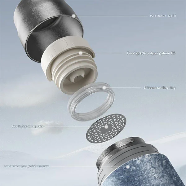 கிளாசிக் டீ ப்ரூவர், டைட்டானியம் பாட்டில் உள்ளேயும் வெளியேயும் தூய டைட்டானியத்தால் செய்யப்பட்ட லீக் ப்ரூஃப் கப்பைக் கொண்டுள்ளது, இதில் லீக் ப்ரூஃப் இமைகள், தூய டைட்டானியம் கப் கேப்கள் மற்றும் டபுள் லேயர் ஆன்டி ஸ்கால்டிங் ஆகியவை உள்ளன!
