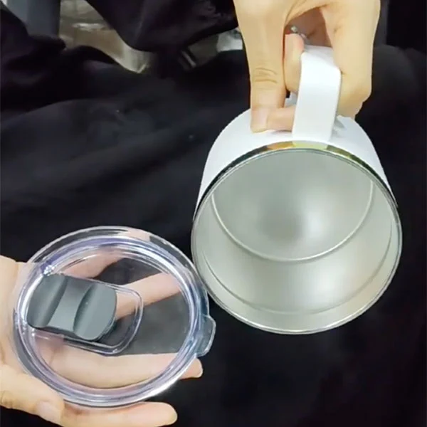 கைப்பிடியுடன் கூடிய குவளை வெற்றிட சிகிச்சைக்கு உட்பட்டுள்ளது மற்றும் குளிர்ச்சியாக இருக்கக்கூடும், ஆனால் குளிர்ந்த தக்கவைப்பு காலம் பொதுவாக அதன் பெரிய திறப்பு மற்றும் முழுமையடையாமல் சீல் செய்யப்பட்ட மூடி காரணமாக 6 மணிநேரம் ஆகும்.